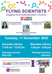 To book, please call Mareeba Library on 4086 4622 or Kuranda Library on 4093 9185 or visit: Home | Mareeba Shire Council Libraries.