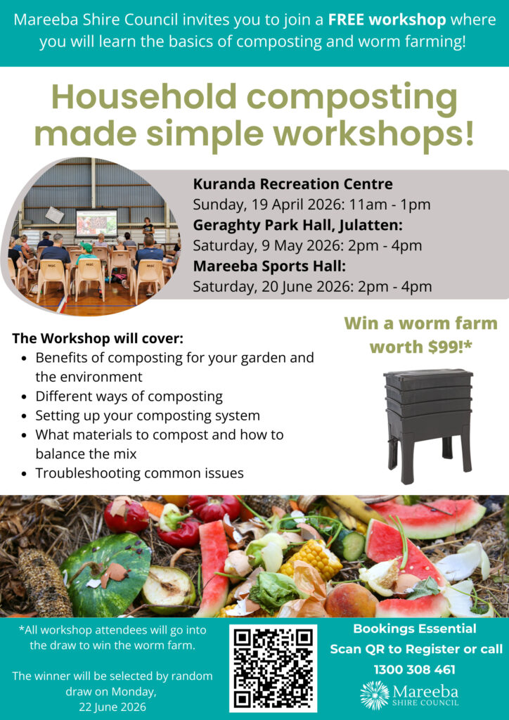 The workshop at Koah Hall has been postponed to 11am-1pm Sunday, 19 April and will be held at the Kuranda Recreation Centre.