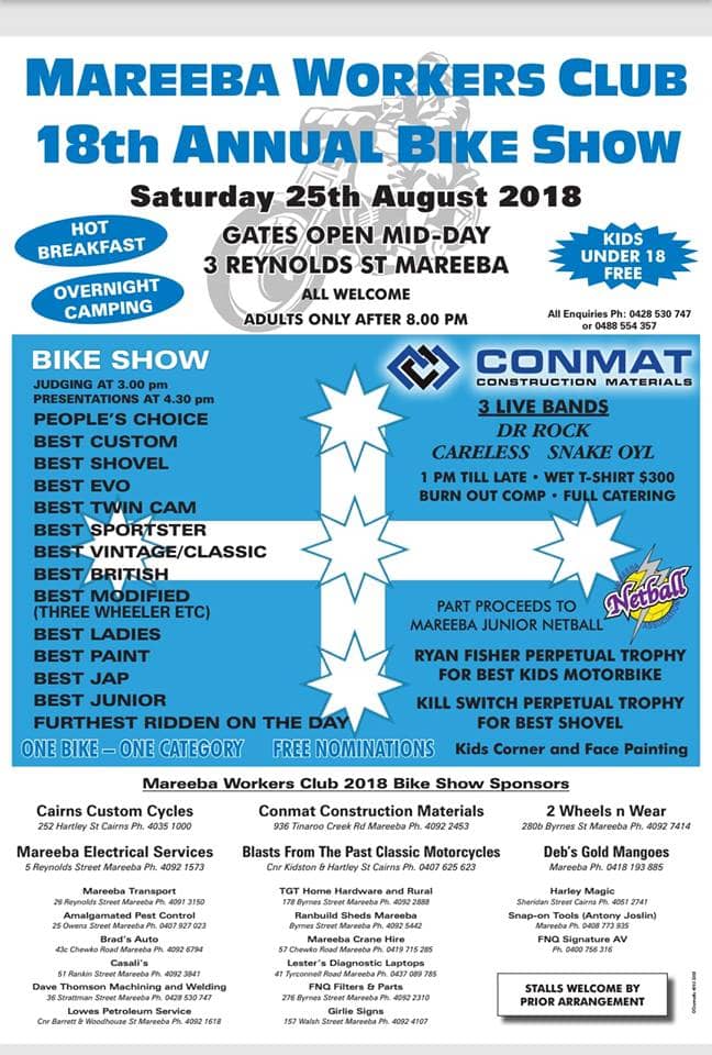 Where: Mareeba Sports Hall, 183 Walsh Street Mareeba